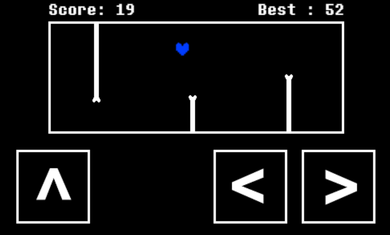 Sans游戏蓝色灵魂安卓版是款采用街机风格的休闲闯关类游戏,在Sans游戏蓝色灵魂安卓版中玩家需要控制蓝色灵魂,在重力作用下需要躲避来自右侧的骨头,使用箭头按钮移动或跳跃,以最快的顺利到达终点,获取最高的游戏分数。游戏每分钟都变得越来越难,挑战难度就越来越大哦,游戏过程一定控制好蓝色灵魂不碰到骨头,比较考验玩家的操作能力呀。