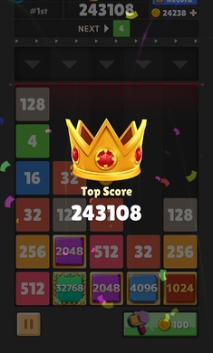 3、将方块投放到另一个具有相同数字的方块上,将它们合并或组合成更大的数字。