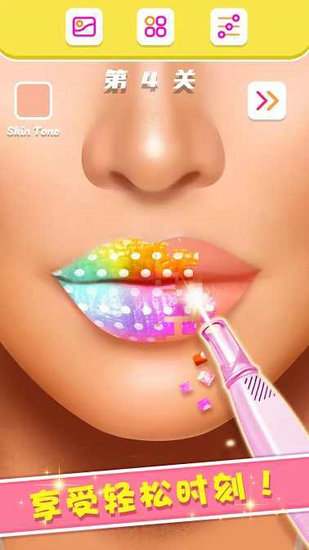 一款帮助爱美的女孩来完成打扮的休闲游戏,想要让自己的嘴唇变得如此的性感吗?那就来获得免费的唇膏,每一种颜色自由的挑选,不同的装扮让女孩变得如此的性感,一些特别的工具让女孩的口红看起来是非常的耀眼,不同的样式放心来选择。