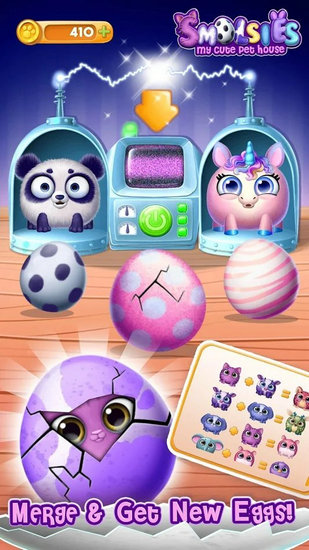 1. 寻找惊喜蛋,合并所有收集蛋,孵出更神奇的宠物,自由装扮,打造梦幻宠物屋。