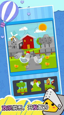 2、可爱拼图:美丽的图画、有趣的设计、简单的操作,带给孩子无限欢乐。