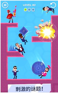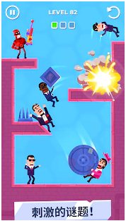 击打大师无限金币破解版是轻松休闲的益智闯关类游戏,击打大师无限金币破解版中玩家饰演的特工需要运用手上的武器在关卡中快速的击败地图中的所有敌人。它采用了物理模拟系统,所有的关卡物品会拥有真实世界的物理特性,开动脑筋运用地图物品结合攻击就能快速的解决掉对手。