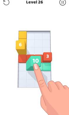 1、玩家在这里运用手指来滑动游戏界面,控制方块的移动、填补,注意正确顺序。