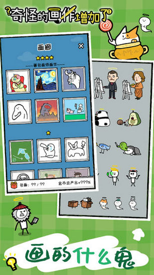 一款佛系挂机游戏,世界各种名画家去世后在天堂又被重新召唤回来继续画画。