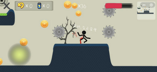 1. 你可以通过上方的小地图看到整个关卡里的地图大概然后让火柴人前进,向前出发收集一路上的金币;