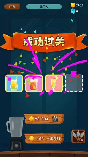 3. 成功通过关卡可以获得一种新的饮料,集齐四种饮料可以进行一次幸运抽奖机会,充满惊喜。
