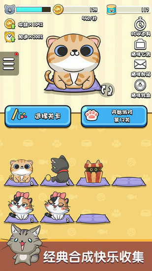 是一款放置类合成挂机游戏,我们有清新的画面,可爱精致的猫咪造型。