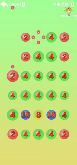 关卡难度升级,当屏幕上出现的数字2越来越少,玩家需要自己制作攻击机会;