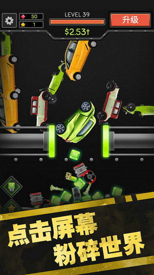 2、让传送效率加快,让效益增长,期间所粉碎道具所收集到的金币,可以用来升级粉碎机,并且还有离线收益;
