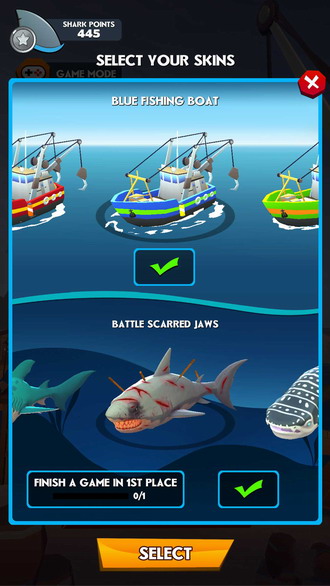 满足于最基本的游戏体验 -- 去达成各项成就,就能解锁新的船只和巨鲨皮肤!你可在每轮游戏开始前,为你的船只和巨鲨选择一个定制皮肤,让你变得与众不同。达成的成就越多,解锁的皮肤选项就越丰富。