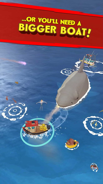 驾驶船只时,你需要高速航行去拯救尽可能多的泳者,来提升船只规模。你船的规模越大,就越容易击败巨鲨。特别是,巨鲨也会由于吞食越来越多的鱼类、浮标、码头木板、泳者……而变得更加庞