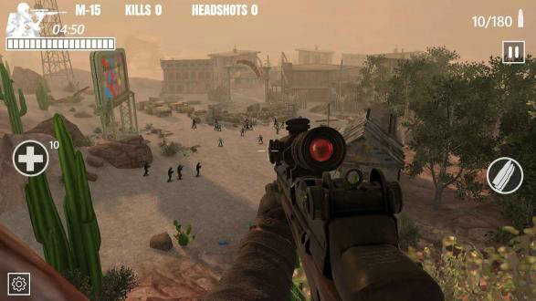 1.最简单也是最好的僵尸射击狙击模拟器游戏,适合安卓设备,可以实现因重力导致的子弹实时掉落。