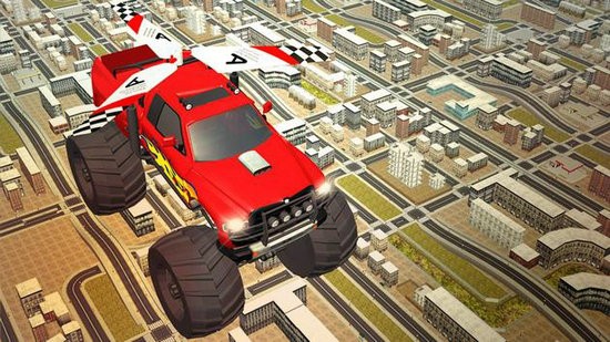 欢迎来到最大的开放世界飞行卡车模拟器,在这个疯狂的游戏中,你将乘坐怪物卡车飞行。