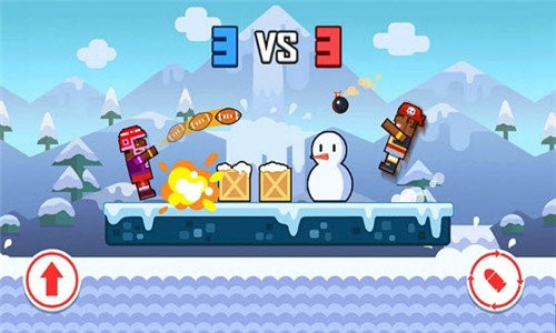 2、你可以通过跳跃和攻击来消耗对方的血量,武器会随机从天下掉落下来。