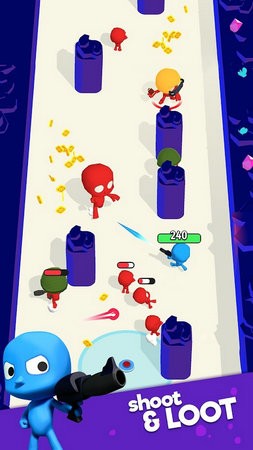 2、在移动中玩家的射击角度将会不断的改变,帮助玩家快速的瞄准最近的敌人进行一个精准的射击快速的淘汰。