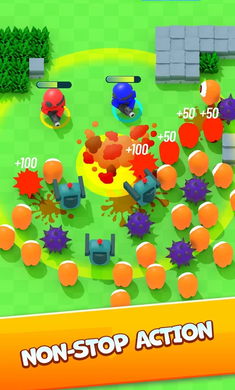 2. 玩家在游戏中需要分别控制红蓝两色小人,一起拿起武器去迎战不断向你们袭来的敌人。