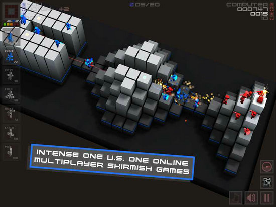 1、使用自己的小Cubemen保卫你的基地正试图运行它从其他的小Cubemen。