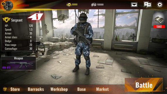 4、在战斗之间,雇用新的战士并放大他们,治愈伤者并制造新武器。