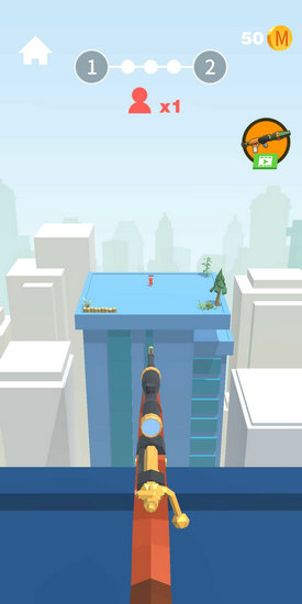 3. 不过要注意,砖块在空中会摇摆不定,一定要掌握好惯性之后再开枪。