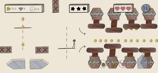 障碍之王手工冒险无限金币版以平台冒险为核心玩法,玩家需要操控自己的小人去进行闯关冒险。障碍之王手工冒险无限金币版中的每一个关卡都是手绘而成的,独特的画风带给玩家独特的冒险体验。这里的障碍分成了几种不同难度,对于玩家来说,有选择和尝试的空间,你可以按照自己的想法去体验。游戏整体自由度很高,玩家还可以在这里加一些新的东西去玩。