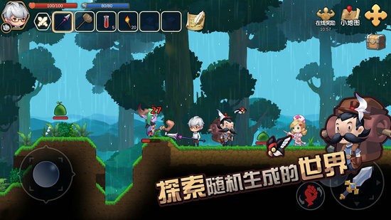 这是一款2D沙盒游戏,游戏画面精美清新,音效欢快,是一款集动作、收藏、创作元素于一体的高自由度冒险游戏。