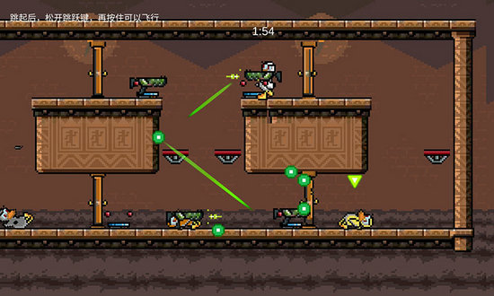 这是一款使用像素风格结合横版动作类玩法的多人乱斗类游戏,玩家可以享受到2到4人的联机对抗挑战,还能够感受最快节奏的多人乱斗体验。