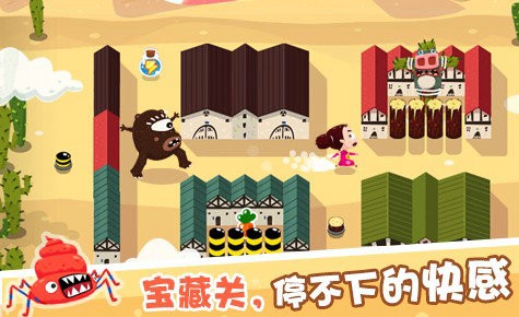 2、每一关游戏里都有坏蛋守着需要解救的猪,那个坏蛋会追着小女孩跑,如果被抓住游戏就结束了。