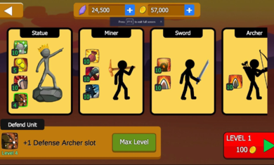 建立矿工来收集贵重的黄金和宝石,您可以用它们购买火柴人战士:剑,矛,弓箭手,巫师和巨人