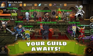 每个公会成员都需要装备和武器。他们升级并分层!并且不要忘记升级这些功能
