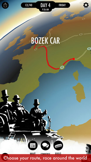 80天环游世界 80 Days 是一款由开发商Inkle Studios推出的文字类冒险游戏。游戏是由小说《80天环游世界》同名改编,其中在原小说中两主仆主要通过海路,依次途经地中海、红海、阿拉伯海、印度洋、日本海、太平洋最终返还伦敦,而游戏中玩家面对的是全球多达150个城市,交通工具也加入了蒸汽时代最重要的产物——火车,如此一来,这一路的风土人情都要丰富精彩得多了。