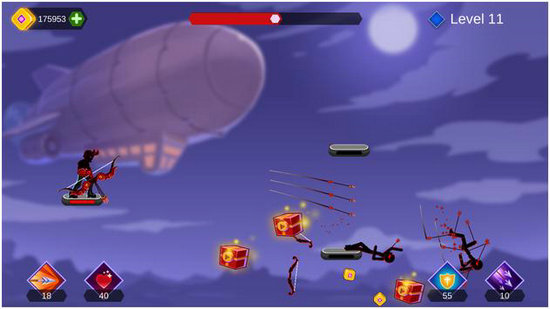 绿箭侠无限金币版以弓箭射击为主要玩法,玩家将在这里锻炼自己的射箭技术,努力成为一个神射手。在绿箭侠无限金币版中有着丰富的武器类型可供选择,玩家可以选择一种称手的武器去进行体验,在一次又一次的战斗中消灭敌人的火柴人弓箭手。经典的火柴人形象,精美的卡通画风,结合令人上瘾的打击手感,让玩家可以充分享受这款游戏的乐趣。