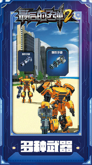 2. 各种激光武器各种导弹炮火随你挑选,在这个游戏世界内保护所有的人类;