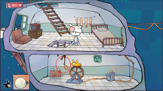 5、等大胖墩起身后,带走他心爱的小摩托,噢!不!是他的灯泡,再从通道进入下一层