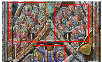 16、点击旁边的教堂门,将图中的头像放进去,然后依次排好。