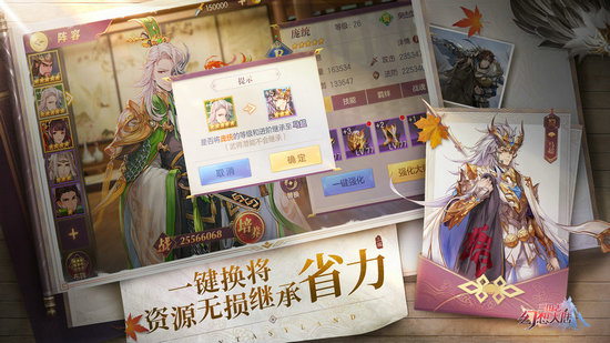 告别重复养成烦恼,武将切换,等阶装备一键转移,资源均百分百继承,阵容调整更轻松!