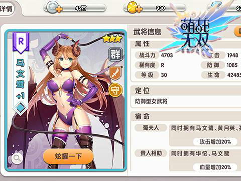 3、无尽羁绊牵人心:开放宿命升级系统,萌将之间的羁绊也是可以升级的哦,羁绊越深战力越强,敌军三刀怎敌你三世羁绊。