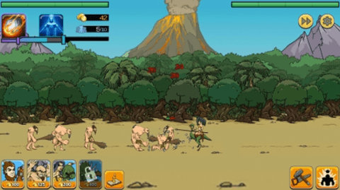 2、玩家应该从石器时代开始,通过召唤恐龙和原始人来战斗。