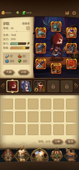 ④前期所有的套装留着给训练用(绿色也能用于训练),确定没用再分解,套装以外的绿色白板全分解了拿钻石,还有注意暗猎者和审判者别穿了元素师的装备(暗猎者毒和冰的装备,审判者物理和防御,元素师冰和火)