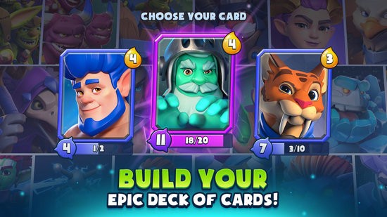 2. 从路障到坦克的所有卡牌,增加战士的健康和伤害,击败敌人并成为胜利者。
