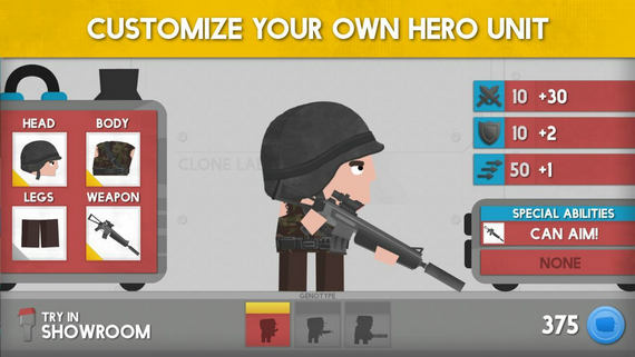3、选择你自己的单位和不同的克隆,从迷你枪挥舞士兵喷气包或罐设计你的军队。