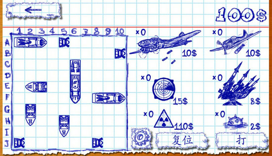 非常独特的圆珠笔手绘风格的游戏画面,带给玩家奇特的视觉体验,配上炫酷刺激的音效,带你领略完全不一样的海上战斗!在游戏中玩家能够拥有战舰、飞机、潜艇、地雷、雷达等等超多武器和战舰,你可以使用他们向对手发起猛烈的攻击,击沉敌军的海军战舰从而获得胜利