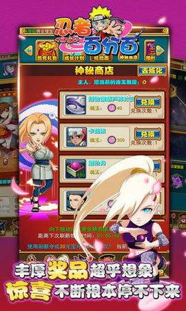 忍者百分百免费gm版是修改破解后的免费版本,游戏内的卡牌抽取和商城道具通通免费,并且还有着用不完的金币和钻石,在短时间内能快速升级培养你想要的角色,轻松制霸各类竞技场。