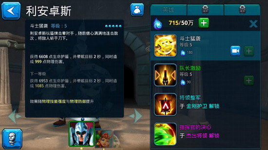 每个英雄都有其独有的技能,且技能释放非常的强力震撼,可进行升级来增幅其效果。