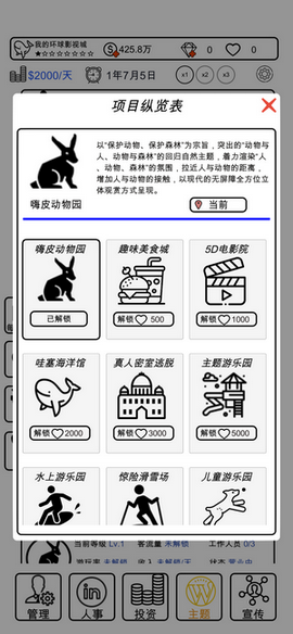 1、可以选择建造的主题公园很多,每个不同的公园都会给您带来不同的好处