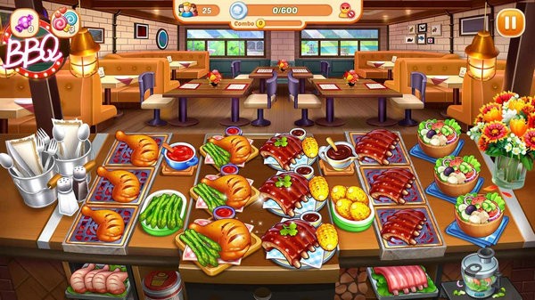 3.升级厨房游戏设备,并使用厨房游戏用具生产更多种类的菜肴和美味佳肴。