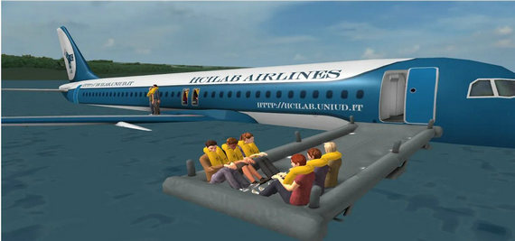 2、飞机行驶发生事故,根据正确的指令,使用专业道具逃生。