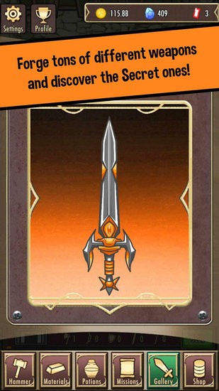 你将能够制造最史诗般的幻想武器,作为一个有才华的铁匠!