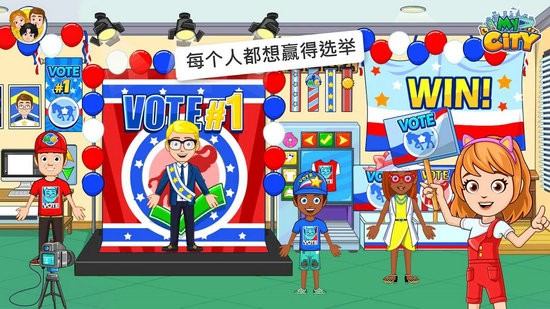 我的城市选举日中文版是一款卡通风格的模拟选举游戏,在我的城市选举日中文版中玩家将去参加市长选举大赛,可以去参观市长办公室,把自己神圣的一票投给最喜欢的候选人,但是也希望自己能赢得选举,成为一名最棒的市长哦。游戏玩法超级简单,众多的关卡模式可以挑战,快快加入游戏参与选举大赛咯。