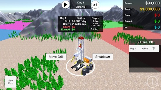 选择在何处设置钻机,按“播放”按钮开始播放,然后按x1,x2或x3加快时间