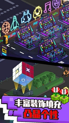 1. 经典的像素画风,结合街机游戏厅经营玩法,带给玩家怀旧的感觉。